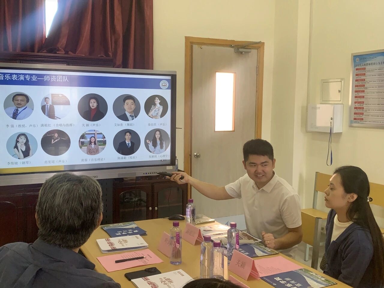 随后,音乐表演教学部主任满祖红聚焦音乐表演专业,从师资队伍建设、教学成果积淀、人才培养路径、实践平台搭建、赛事获奖情况及教师科研进展等方面进行全面汇报。作为2023年新创办的特色专业,该专业已形成鲜明的教学特色,在短时间内取得了阶段性成果。