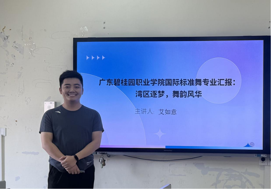国际标准舞订单班校内负责人艾如意,作“湾区逐梦,舞韵风华”国际标准舞专业汇报