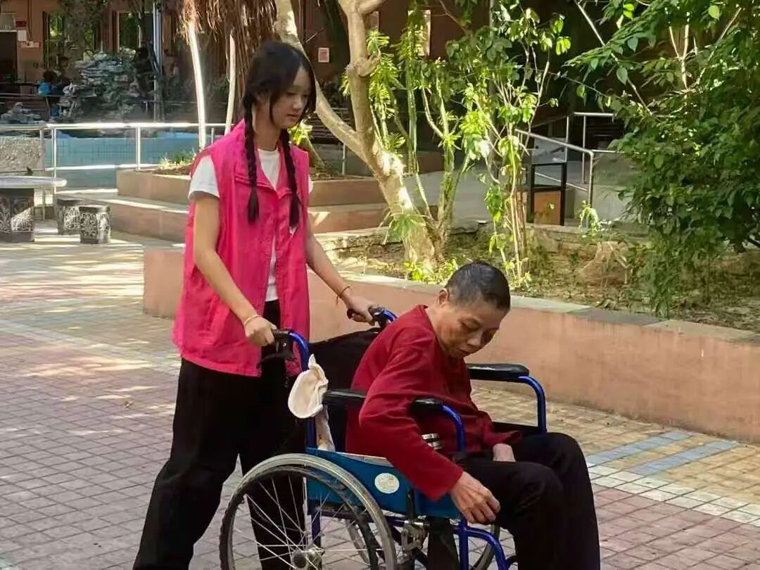 老树枝繁叶茂,在午后的阳光里撑起一片清凉,老人坐着轮椅在树荫下,看细碎的光影在衣襟上慢慢流转,偶尔和身旁志愿者聊几句话,语气里满是岁月沉淀的舒缓。这份安静的陪伴,恰是时光里最美好的模样!