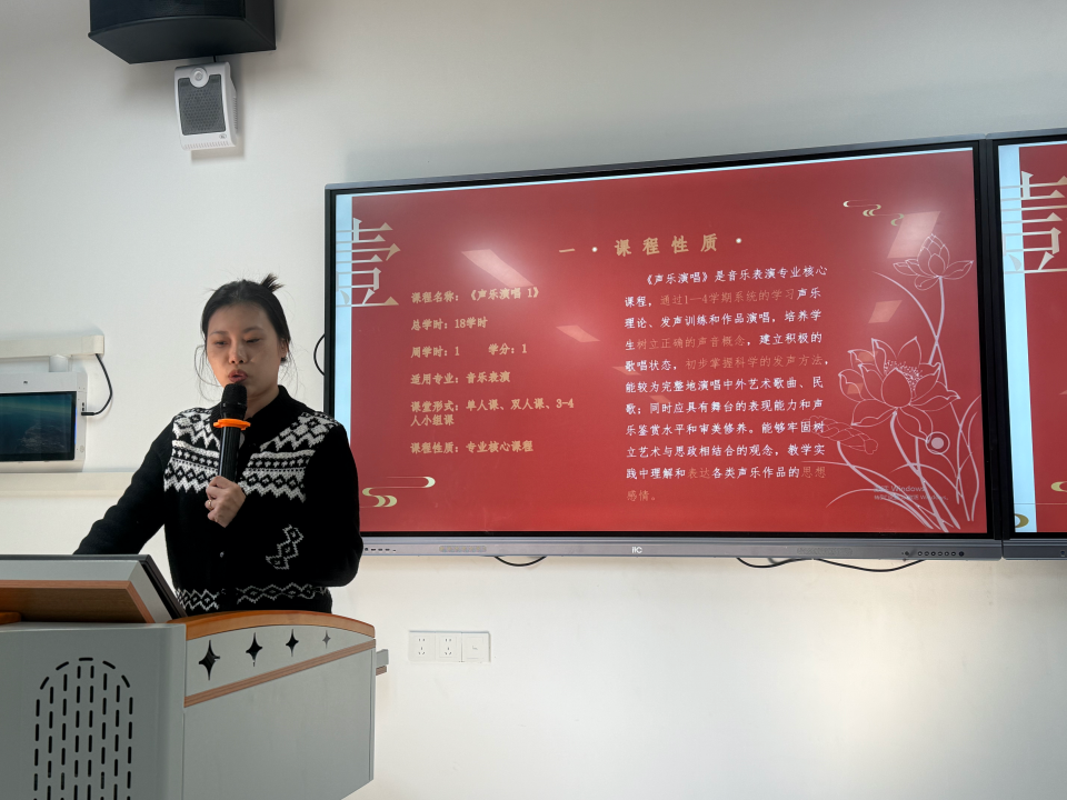 关颖老师以“以美育人,以文化人”为主线,呈现了声乐课程中“红色歌曲演唱”“民族音乐文化”“时代主题创作”三位一体的思政融入模式。通过“一首红歌一段历史”“一方乡音一份情怀”等教学模块,让学生在演唱技巧训练中感悟党的光辉历程、增强文化自信、培育艺术为民的服务意识。