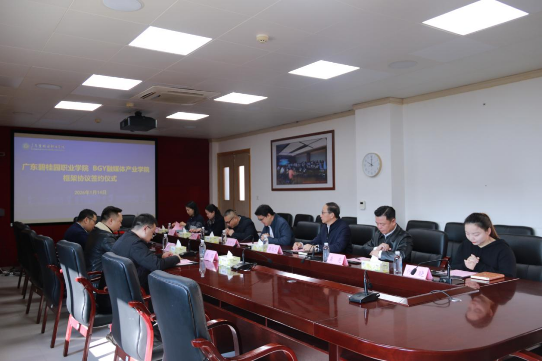 2026年1月14日,广东碧桂园职业学院与湖南硅谷数科信息技术有限公司举行BGY融媒体产业学院签约仪式,标志着双方校企深度合作进入实质性阶段。校企相关领导及教师代表出席活动。
